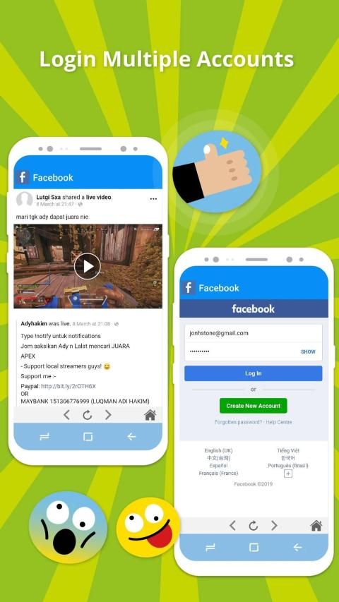 All Social help you login many social account in one app. You not have to install any apps, save your phone's space for more photos, videos...