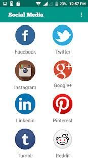 It contains all popular social networking sites and one can access your favorite social media such as Facebook Twitter Instagram Pinterest LinkedIn Telegram Snapchat Tumblr Baddo hitwe Skout Twoo Mico Reddit AOL ICQ Meet Me Digg Imgur Tuenti etc. and many more through this app.