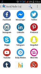 यह सभी लोकप्रिय सामाजिक नेटवर्किंग साइटों में शामिल है और भी व्यक्ति इस एप्लिकेशन के माध्यम से hitwe Skout खोंजे माइको रेडिट एओएल ICQ मिलिए मेरे डिग Imgur Tuenti आदि जैसे फेसबुक ट्विटर Instagram Pinterest लिंक्डइन टेलीग्राम Snapchat Tumblr Baddo के रूप में अपने पसंदीदा सामाजिक मीडिया का उपयोग और कई और अधिक कर सकते हैं।
