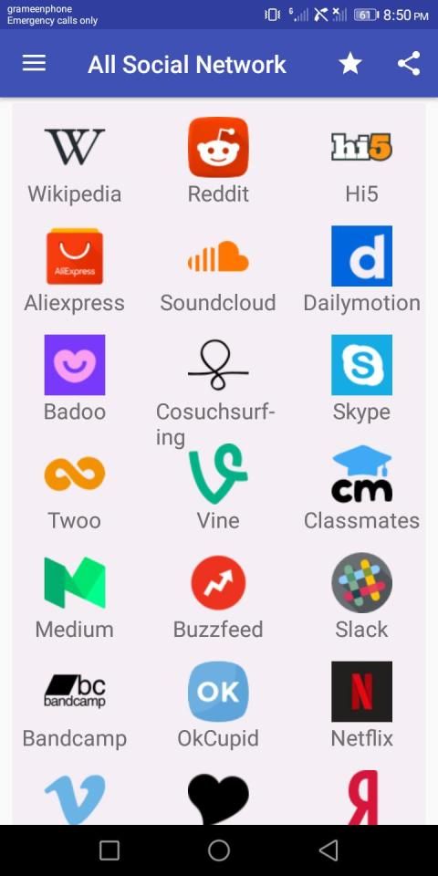 Are you tired of using social networking applications separately? Now you can delete all applications supported by the social media and social network application in a single application. And directly access it from all social network application. To save more storage space on the Smartphone and keep charging and battery life.