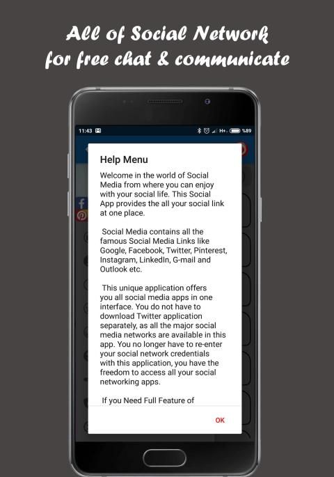 इस ऐप में फेसबुक, ट्विटर, इंस्टाग्राम, स्नैपचैट और पिंटरेस्ट जैसी सभी प्रसिद्ध सोशल नेटवर्क साइट हैं।