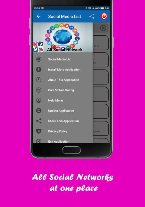 आप इस एप्लिकेशन के भीतर सभी नीचे सूचीबद्ध सामाजिक नेटवर्क तक आसानी से पहुंच सकते हैं: