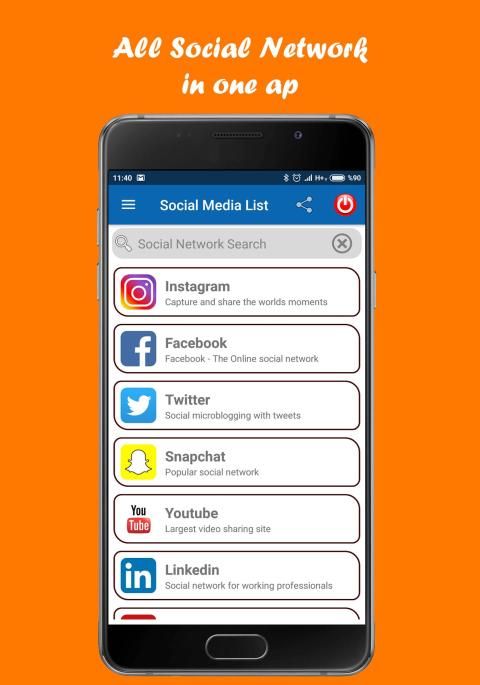 All in One Social Network app provides an easy access to all social networks namely: Facebook, Twitter, Instagram, Snapchat, whatsapp and many more.