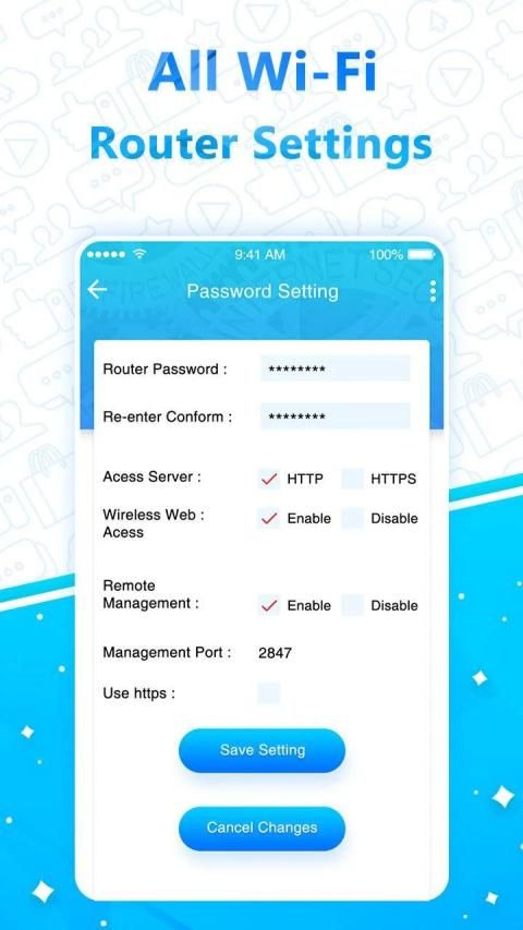 यह ऐप आपको कंप्यूटर या लैपटॉप ब्राउज़र का उपयोग करने के बजाय अपने फ़ोन का उपयोग करके वाईफ़ाई राउटर सेटिंग्स सेटअप, या लैन सेटिंग्स कॉन्फ़िगरेशन को कॉन्फ़िगर करने में मदद करता है।