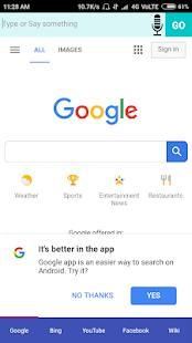 Here You can use major Web search engines like Google Yahoo Baidu Bing Ask Aol DuckDuckGo İxquick StartPage Yandex WolframAlpha Webcrawler Dogpile Excite Alphea Goodsearch Mywebsearch İnfospace Contento Boardreader İnfo Wikipedia İnside Yippy and more.. with a Simple app You can Search more than 24 Most using search Engines using a Single Application.