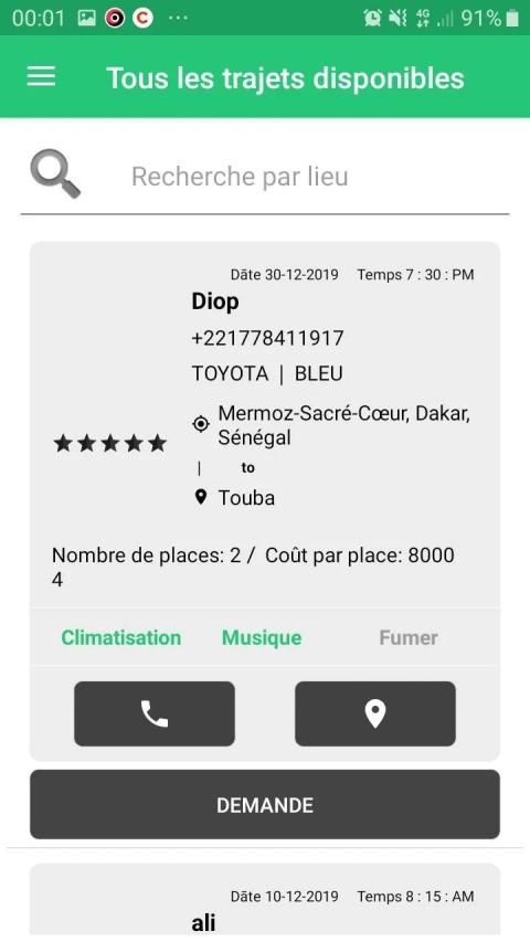 • Recherchez sur Allo Dakar App votre trajet