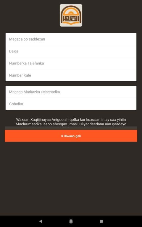 Appkan wuxuu kaa caawinayaa inad iska diwaan galiso Tar-tanka Almahir Foundation ayadoo aad macluumaad kaaga kusoo gudbin kartid