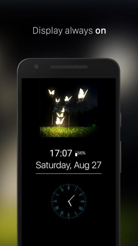 "हमेशा diplay पर" हमेशा पर अपनी स्क्रीन रहता है। इस तरह, आप तारीख, समय और अपनी सूचनाओं की जानकारी (एसएमएस, फेसबुक ...) जब भी आप चाहते हैं की जाँच कर सकते हैं।