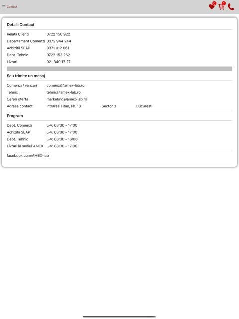 Cu o experienta de 25 de ani pe piata romaneasca de aparatura si consumabile de laborator, analiza si cercetare si pentru a putea satisface toate cerintele pietei si ale clientilor, in 2016 am deschis cel mai mare magazin online in domeniu, www.amex-lab.ro. Compania AMEX Import Export SRL este cerificata SR EN ISO 9001:2015.