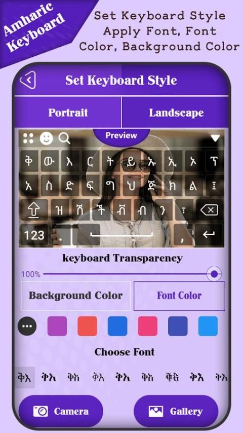 अपने अम्हारिक् कीपैड पृष्ठभूमि सेट करने के लिए अद्भुत विषयों का चयन करें या आप गैलरी या कैमरे से अपनी तस्वीर का चयन करें और अपने अम्हारिक् कुंजीपटल पृष्ठभूमि सुंदर बना सकते हैं। और कीबोर्ड का पूर्वावलोकन देखने जब अम्हारिक् टाइपिंग के लिए अपनी खुली।
