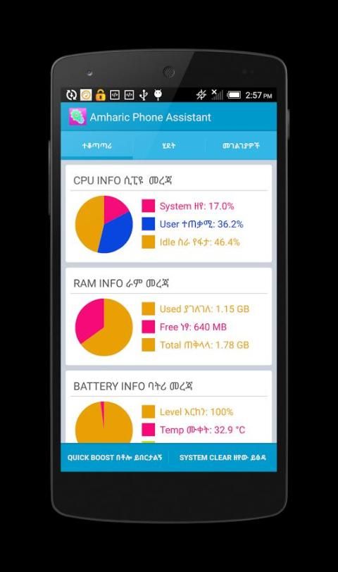 (इथियोपिया) अम्हारिक फोन सहायक በአማርኛ የስልክ ረዳትዎ अपने एंड्रोइड्स प्रदर्शन को बेहतर बनाता है कि शानदार प्रणाली उपयोगिता उपकरण है। हम एक सरल और सुंदर तरीके से अपने फोन के प्रदर्शन को नियंत्रित करने और बढ़ जाती है, अम्हारिक में अपने एंड्रॉयड फोन की निगरानी में मदद मिलेगी और बैटरी जीवन बचाता करने के लिए प्रदान करते हैं। फास्ट और आसान आपके सिस्टम ओएस और स्मृति को बढ़ावा देने, जो जाहिरा तौर पर उपयोग करने के लिए। यह भी आप साफ प्रणाली चल रहे एप्लिकेशन चलो जो प्रक्रिया प्रबंधक है। यह apk फ़ाइल के रूप में आप बैकअप क्षुधा में मदद मिलेगी और आप उन्हें जब जरूरत को बहाल कि बैकअप और पुनर्स्थापित सुविधा के साथ शामिल थे। प्रणाली क्लीनर सुविधा कैश, थम्बनेल कैश, लॉग फाइल, खाली फ़ोल्डर, ब्राउज़र इतिहास, क्लिपबोर्ड, बाजार के इतिहास, जीमेल इतिहास, गूगल मानचित्र इतिहास साफ।