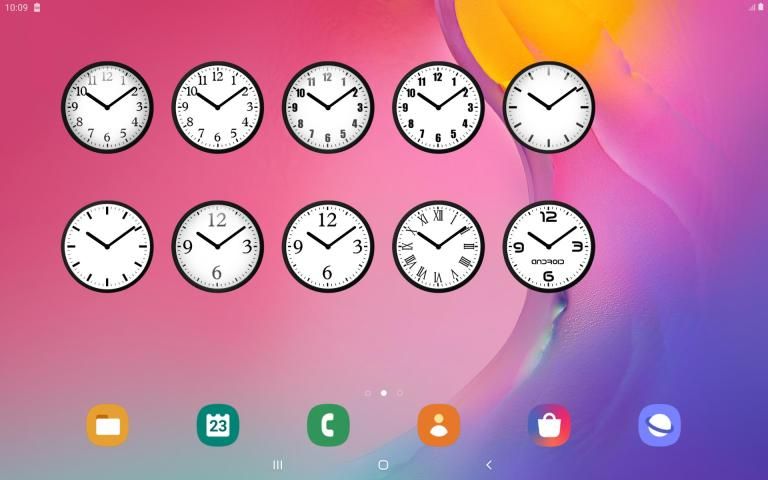 Widget for the Home screen as analog clock. There are twenty kinds of dials for any taste. Maximum size of widget is 256*256 pixels.