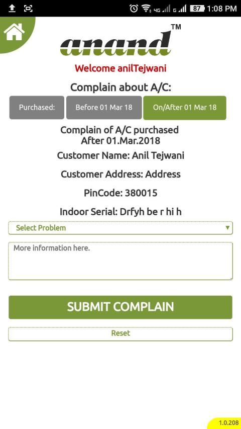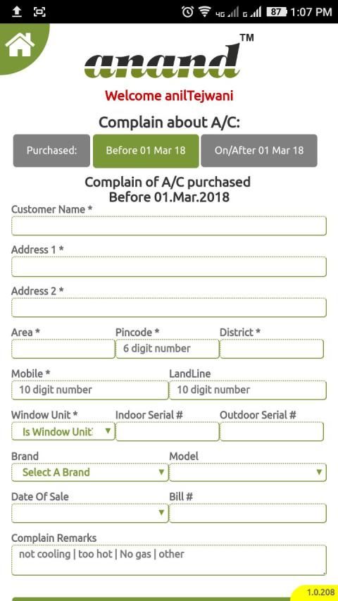 Anand Cooling App for A/c Registration, Installation Request, Complain Management and more.