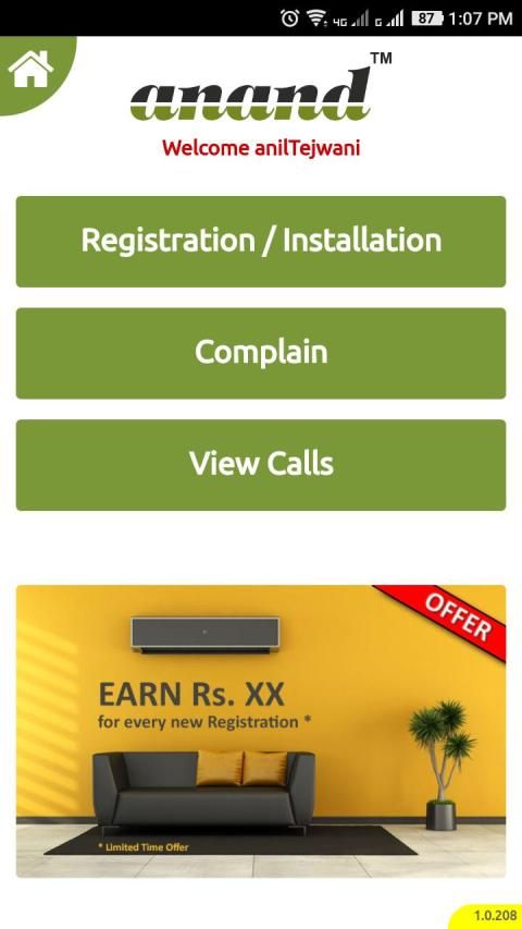 आनंद ए / सी पंजीकरण, स्थापना अनुरोध के लिए ऐप शीतलक, शिकायत प्रबंधन और अधिक।
