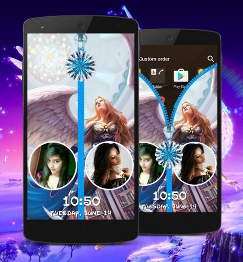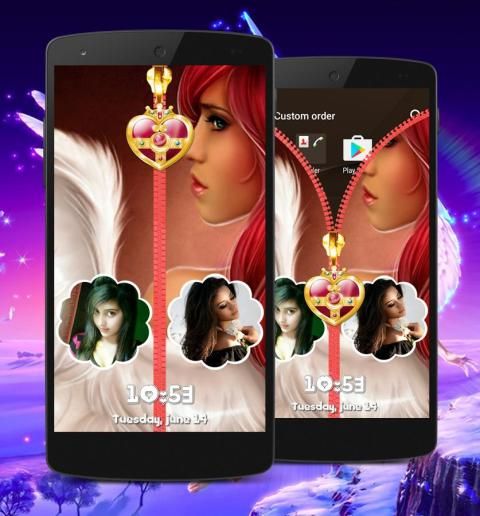 आप पा सकते हैं अलग ज़िप लटकता हुआ और श्रृंखला के साथ HD एंजेल पृष्ठभूमि। यह एक आवेदन पूरी तरह से हेरफेर है। इस में आप लॉकर स्क्रीन के अपने प्रकार के कर सकते हैं। प्रेम युगल लॉक स्क्रीन उपयोगकर्ता के अनुकूल लॉक स्क्रीन है। आप अनुप्रयोग में लॉकर स्क्रीन के प्रत्येक भाग को बदल सकते हैं।