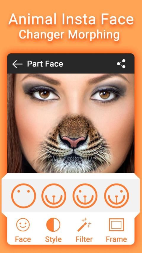 More than 60+ animal faces to blend with: tiger, lion, owl, cat, etc.