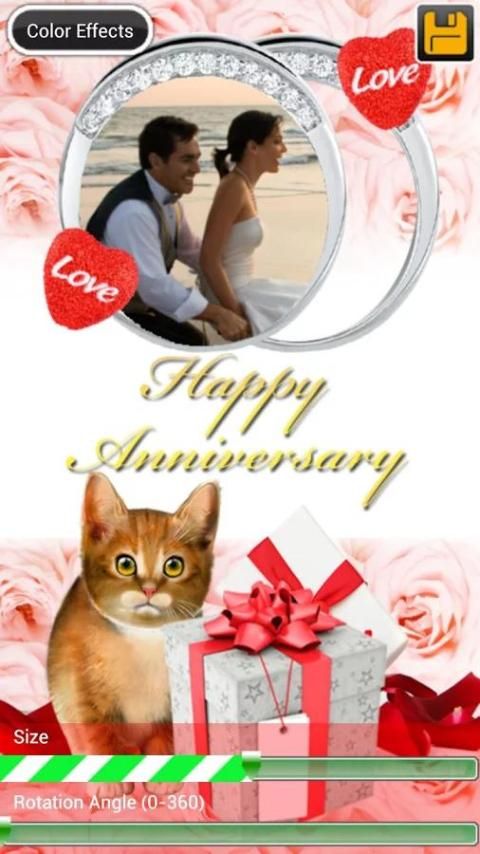 Apply photo effects like Old Photo effects, Black and White color effects, Sepia Color Effects and save the Anniversary cards or share them with any photo sharing and photo editing application.