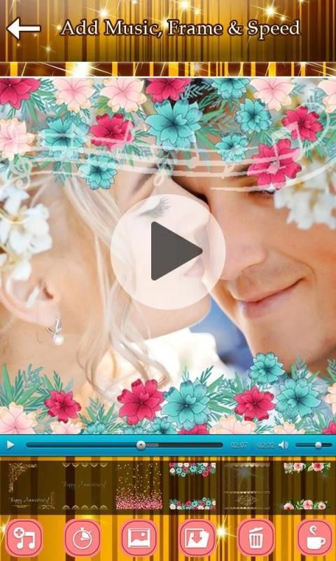 You can create videos using photos, add music to video, edit photos used for the video, add Anniversary frames to video, set speed of frame rate to your photo video. Never miss special moments and clicks of celebration and create video easily with few steps with help of Anniversary video maker.