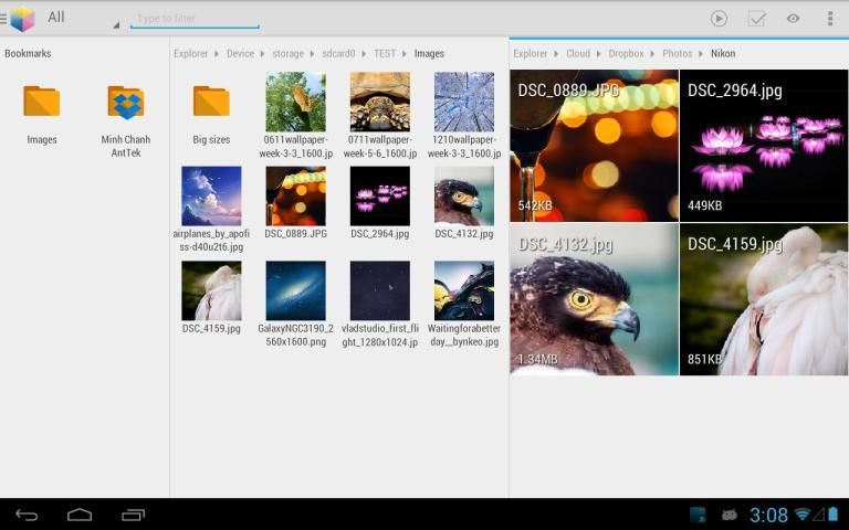 यह Android के लिए पहली बहु पैनल फाइल एक्सप्लोरर है. यह सबसे अच्छा उपयोगकर्ता अनुभव लाने के लिए "खींचें और कहीं भी ड्रॉप" सुविधाएँ.