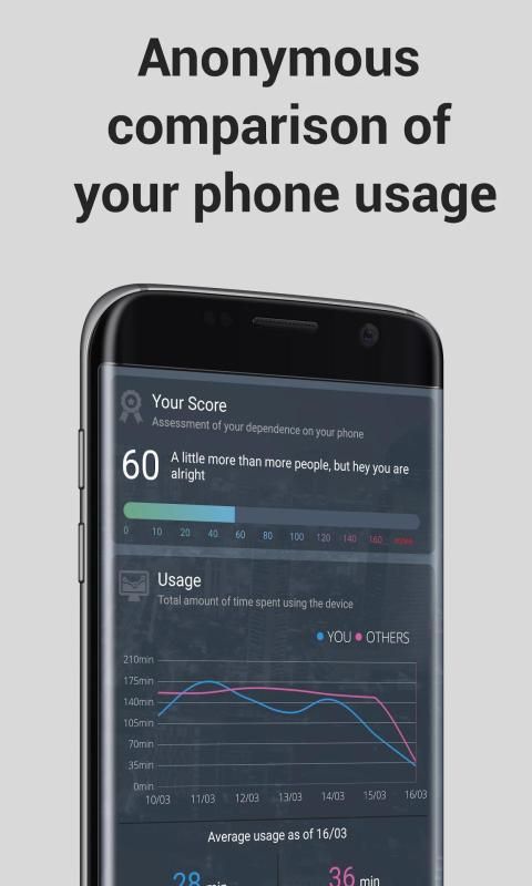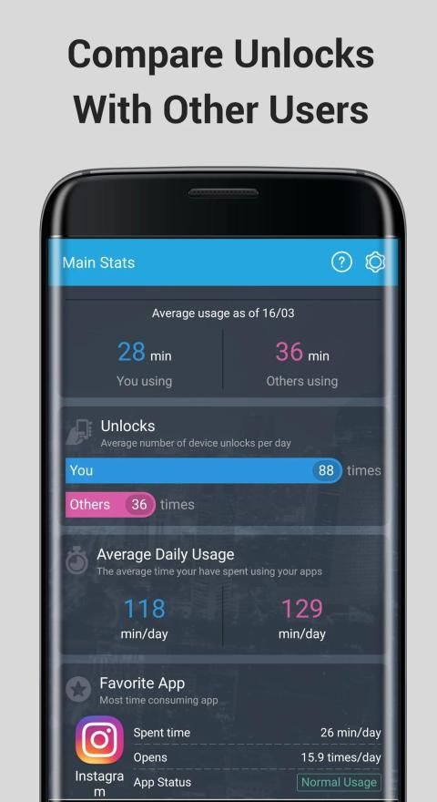 सोशल मीडिया, टेक्स्टिंग, संगीत में लिस्टिंग, और बहुत कुछ पर कुल उपयोग ट्रैक करें। आप अपने सेल फोन के उपयोग की तुलना दुनिया भर के अन्य उपयोगकर्ताओं के साथ भी कर सकते हैं।
