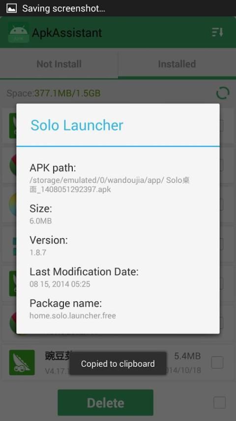 * APK विवरण प्रदर्शित: आकार, संकुल नाम, APK की राह