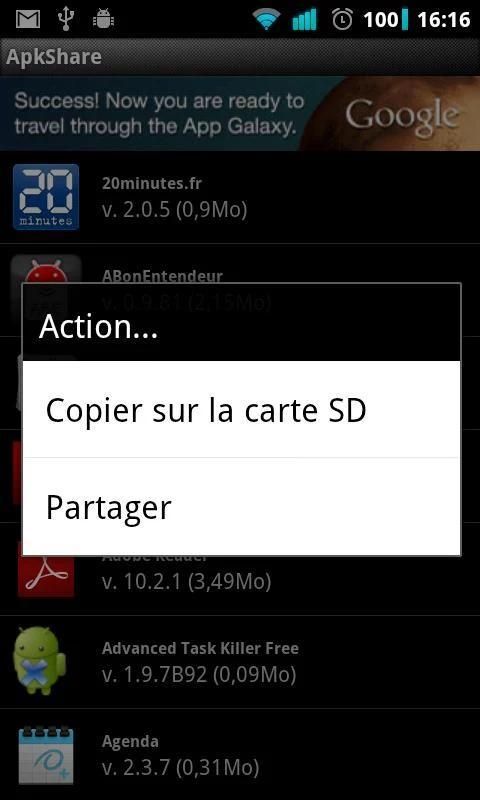 आसान अनुप्रयोग शेयर. ApkShare आप कॉपी या बैकअप अपने आवेदन अपने एसडी कार्ड के लिए या एक दोस्त को भेजने के लिए अनुमति देता है!