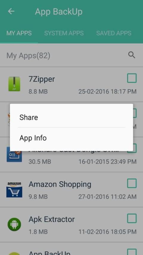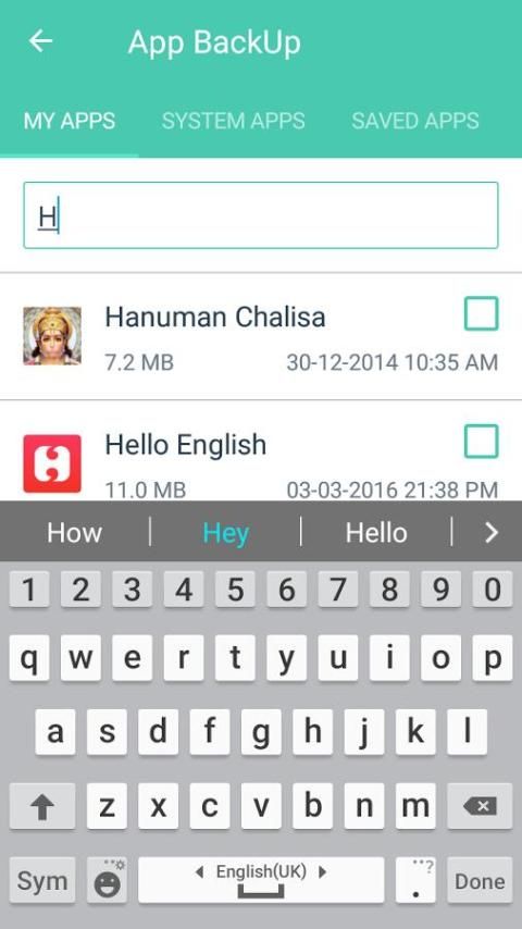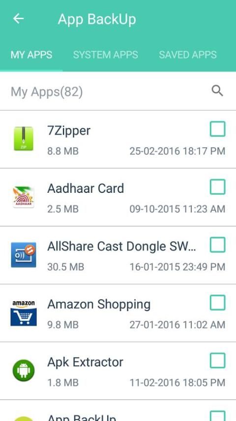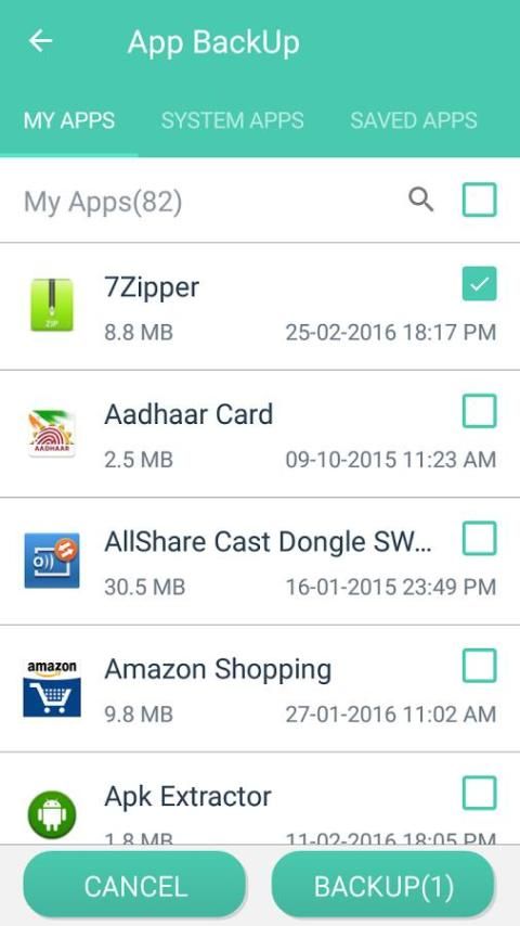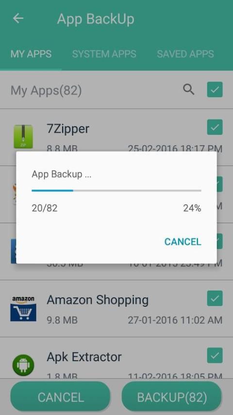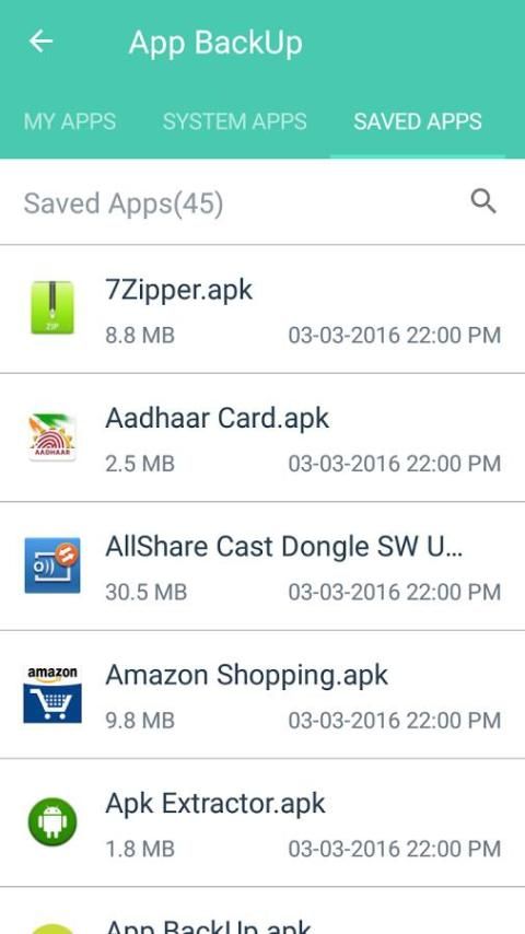 बचाया बैकअप टैब का उपयोग कर बचाया APK देख सकते हैं।