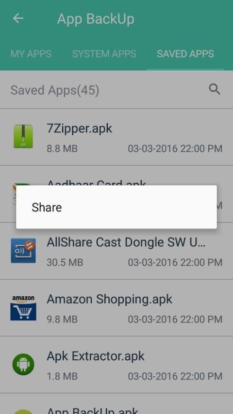 किसी भी वस्तु पर लंबे प्रेस का उपयोग APK साझा कर सकते हैं।