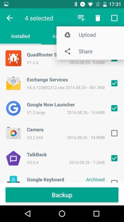 · Backup apps to cloud Google Drive, Dropbox, etc.