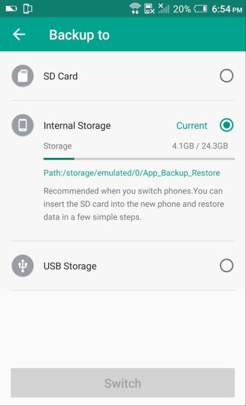 · Backup & Restore to phone memory in default