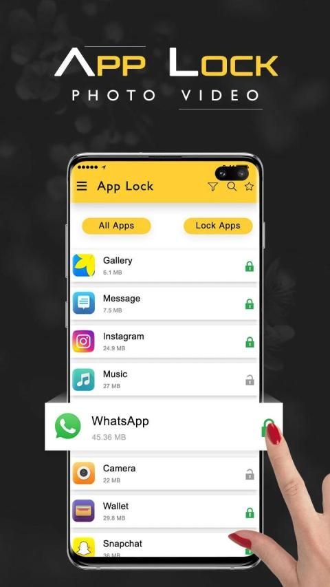 AppLock can lock Facebook, Whatsapp, Gallery, Messenger, Snapchat, Instagram, SMS, Contacts, Gmail, Settings, incoming calls and any app you choose. Prevent unauthorized access and guard privacy. Ensure security.