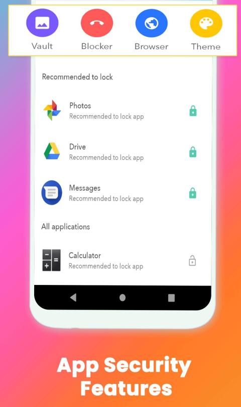 पासवर्ड, फिंगरप्रिंट, पैटर्न या पिन के साथ। अपने फोन पर । इस गुप्त एप्लिकेशन लॉकर के साथ गोपनीयता के रिसाव के संकोच के बिना अपने फोन को किसी के साथ साझा करें क्योंकि आप फिंगरप्रिंट, पासवर्ड के साथ