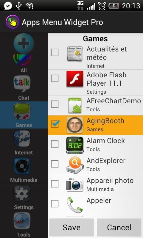 3 - श्रेणी के द्वारा अपनी क्षुधा को व्यवस्थित करें, आप चेक या अनचेक अपनी क्षुधा तो मान्य करने के लिए बटन को बचाने पर नल, आप संपादित करना चाहते श्रेणी के नाम पर लंबे क्लिक करके अनुप्रयोगों को जोड़ने और हटा सकते हैं.