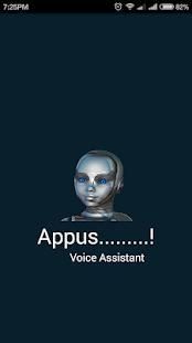 Appus जो सिर्फ एक आदेश में कई कार्य करने के लिए विभिन्न सुविधा प्रदान करता है एक आवाज सहायक ऐप है। उपयोगकर्ता सिर्फ इतना कहना है "प्रेम गीत खेलने" और appus यह के नाम के अनुसार है कि गीत खेलेंगे है तो बस उसका नाम उपयोगकर्ता के साथ किसी भी भाषा की किसी भी गीत खेल सकते हैं। यहां तक कि उपयोगकर्ता गीत का नाम और टाइप कर सकते हैं यह खोज करते हैं। न सिर्फ नाम उपयोगकर्ता आदेश "प्ले वीडियो का नाम" के साथ अपने नाम से किसी भी वीडियो खेल सकते हैं।