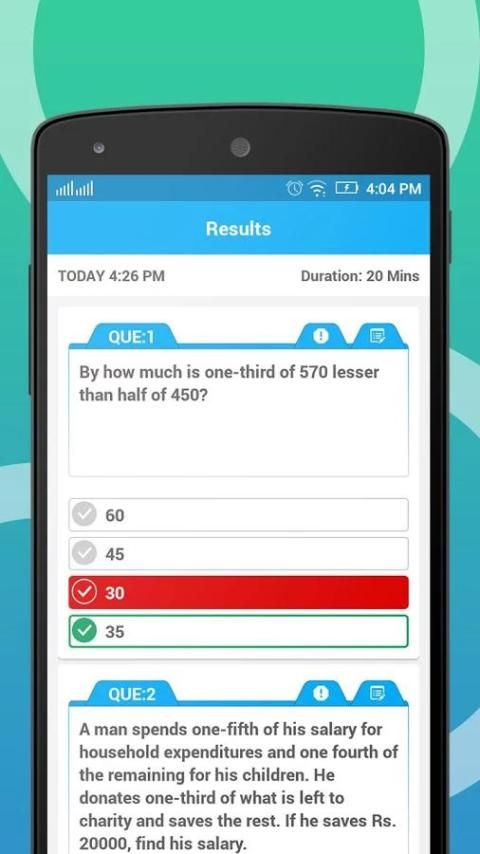 3) रिजल्ट: - आप श्रेणियों के अनुसार परिणामों की जांच कर सकते हैं या आप भी समग्र परिणाम देख सकते हैं। परिणाम यह भी एक जवाब का पूर्ण विवरण प्रदान करते हैं, तो आप अपने सामान्य बुद्धि में सुधार कर सकते हैं