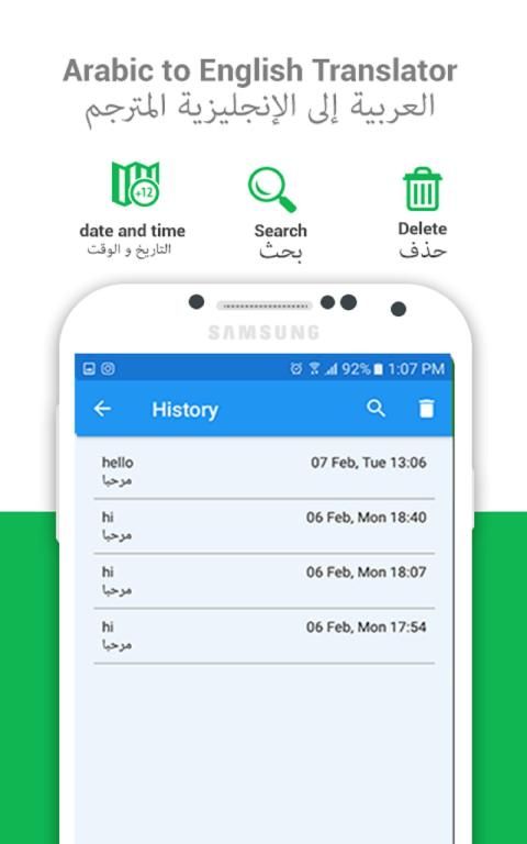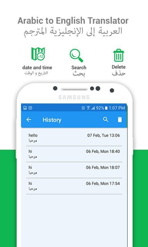 Arabic English translator is the best Arabic translator for English learning and English translator for Arabic learning available for play store! Try this free offline Arabic to English language learner and English to Arabic learning app to enjoy accelerated learning without spending a dime! With this best talking translator pro app you can easily translate words and text from Arabic to English and from English to Arabic. You are able to translate words & even sentences, in just a split second.