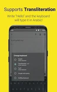लिप्यंतरण समर्थन करता है: अपनी पसंद की भाषा और लिपि दो भाषाओं के बीच ध्वन्यात्मक समानता पर आधारित में टाइप करने के लिए कुंजीपटल करने के लिए अंग्रेजी कीबोर्ड का प्रयोग करें। उदाहरण के लिए, यदि आप अंग्रेजी कीबोर्ड से "हैलो" टाइप कर सकते हैं और यह अरबी में ही लिखेंगे।