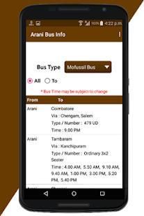 This app provide all information about Arani Mofussil bus and Town bus.