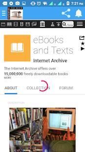 इंटरनेट का संग्रह मुक्त पुस्तकों, फिल्मों, सॉफ्टवेयर, संगीत, वेबसाइटों, और अधिक के लाखों लोगों की एक गैर-लाभकारी पुस्तकालय है।