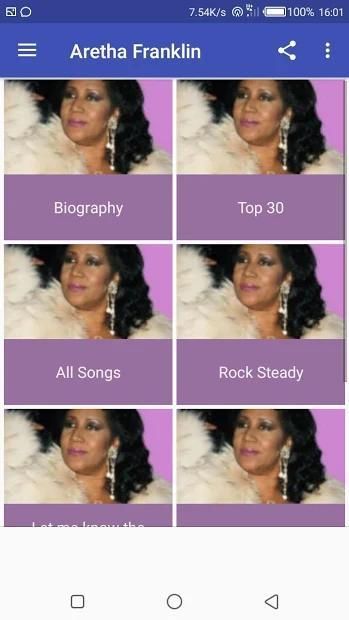 This is not the official app of Aretha Franklin, All contents in this app are sourced all over the internet. If you find any of these contents as violations of your terms and conditions, please let us know and we will do everything to put it down as soon as possible