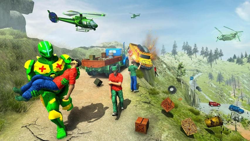 robot hero rescue game is new addition which has been awarded to the robot hero by keeping in front the alarming situations of injured people in far off areas where roads are in very severe condition in army games. Repeat all kinds of same procedures in this city rescue action game and bring out all your sympathetic concerns during your stay in this robot hero rescue simulator. This newly developed robot hero has dual scope for you as it has grand robot hero rescue mission in it which challenges your driving talents in this light hero simulator. Map out all your rescue plans of futuristic robot hero games in convincing and professional manner and feel all kinds of practical rescue missions of army robot hero city rescue games.