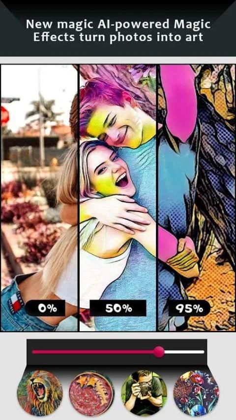 शास्त्रीय, हास्य पुस्तक, आधुनिक, अमूर्त और मोज़ाइक सहित 50 + फिल्टर, के हमारे चयन में से चुनें। हम नियमित रूप से हमारे संग्रह करने के लिए नए तेजस्वी फ़िल्टर जोड़ें।