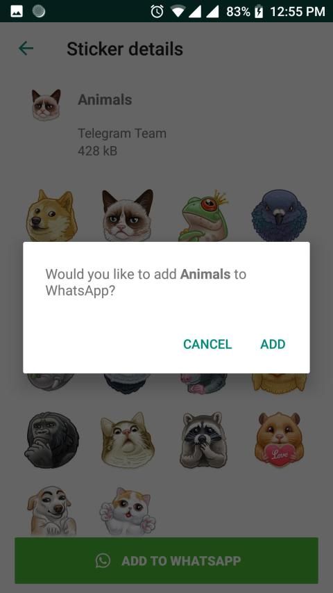 2. व्हाट्सएप पैक के लिए पशु स्टिकर।