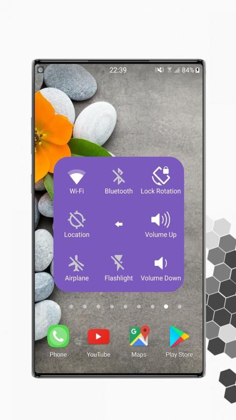 स्क्रीन पर एक फ्लोटिंग पैनल के साथ, आप आसानी से अपने एंड्रॉइड स्मार्ट फोन का उपयोग कर सकते हैं। अधिक सुविधाजनक रूप से, आप अपने सभी पसंदीदा ऐप, गेम, सेटिंग्स और त्वरित टॉगल तक जल्दी पहुंच सकते हैं। आप रनिंग बैकग्राउंड एप्स को साफ करने के लिए स्मार्ट क्लीन फंक्शन का उपयोग कर सकते हैं, अपने फोन की तेजी से मदद कर सकते हैं। सहायक टच भी भौतिक बटन (होम बटन और वॉल्यूम बटन) की रक्षा करने के लिए एक आदर्श ऐप है। यह बड़े स्क्रीन स्मार्ट फोन के लिए बहुत उपयोगी है।