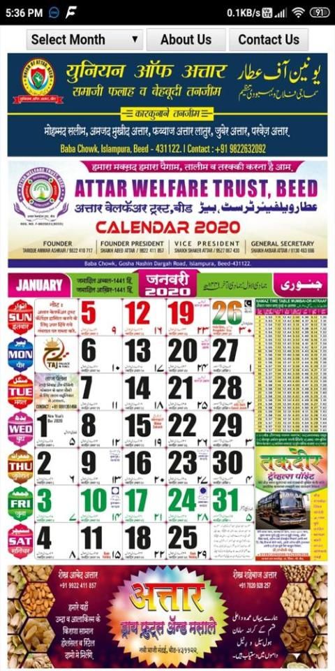 Attar Welfare Trust app contains Attar Welfare Society Calendar 2020