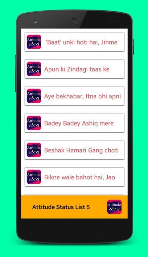 Find most popular android apps here! 10,000+ users downloaded Attitude Status latest version on 9Apps for free every week! It's not only an app it also teaches you how to use it. This hot app was released on 2016-05-02. Here are some guides of this app: 9Apps ऍप्लिकेशन्स की मुफ्त दुकान है. 10,000+ युसर्ज़ ने हर हफ्ते मुफ्त में 9apps पर Attitude Status नया वर्ज़न डाउनलोड किया.आप इस मल्टी फंक्शन ऐप को 9Apps पर आसानी से पा सकते हैं. यह हॉट मोबाइल ऐप्स 2016-05-02 पर जारी किया गया था. शुरू करने से पहले अपनी मौजूदा ऐप को ज़रूर देख लें.