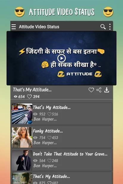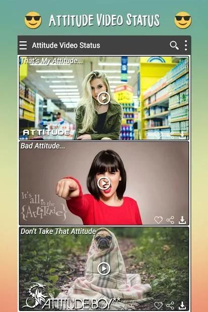 AttitudeVideo Status app gives largest collection of Attitude Girl, AttitudeLove, Attitude Social, AttitudeRomantic, and AttitudeSuper Hit Video.