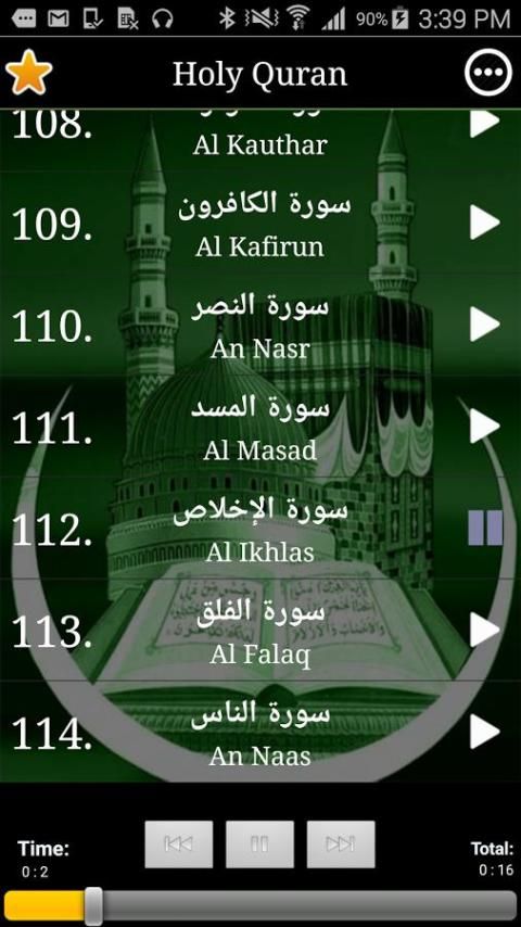 - सूरा अल फतिहाह (प्रारंभिक) ऑडियो