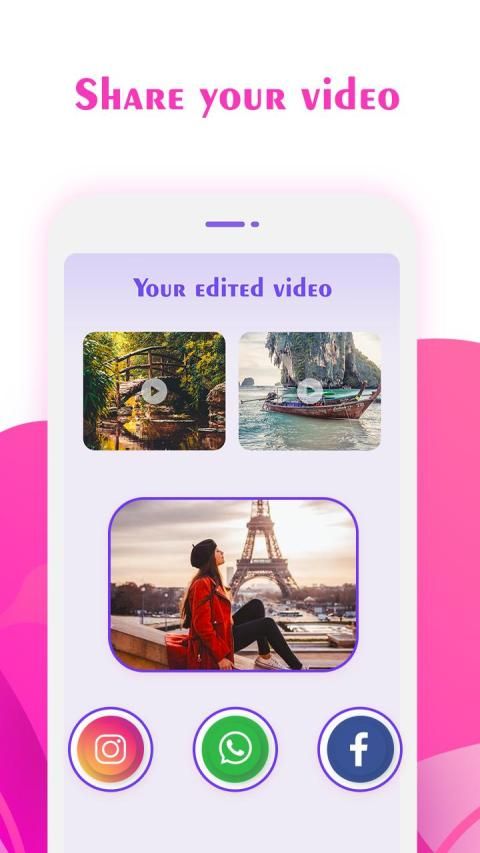 Your edited video will be saved in app and can be shared in social networks or your friends.