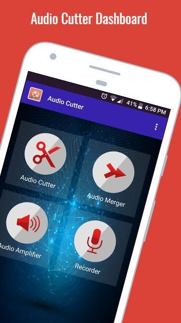 ऑडियो कटर एक आसान और सुविधाजनक तरीके से संगीत फ़ाइलों को संपादित करने के लिए सबसे अच्छा क्षुधा में से एक है। इसके अलावा, आप मर्ज या एमपी 3 या किसी ऑडियो फाइलों में शामिल होने के साथ एक फ़ाइल में कर सकते हैं। यह एमपी 3, WAV, AAC / MP4, 3GPP / AMRR, OGG ऑडियो प्रारूप संपादित करने के लिए समर्थन करता है।